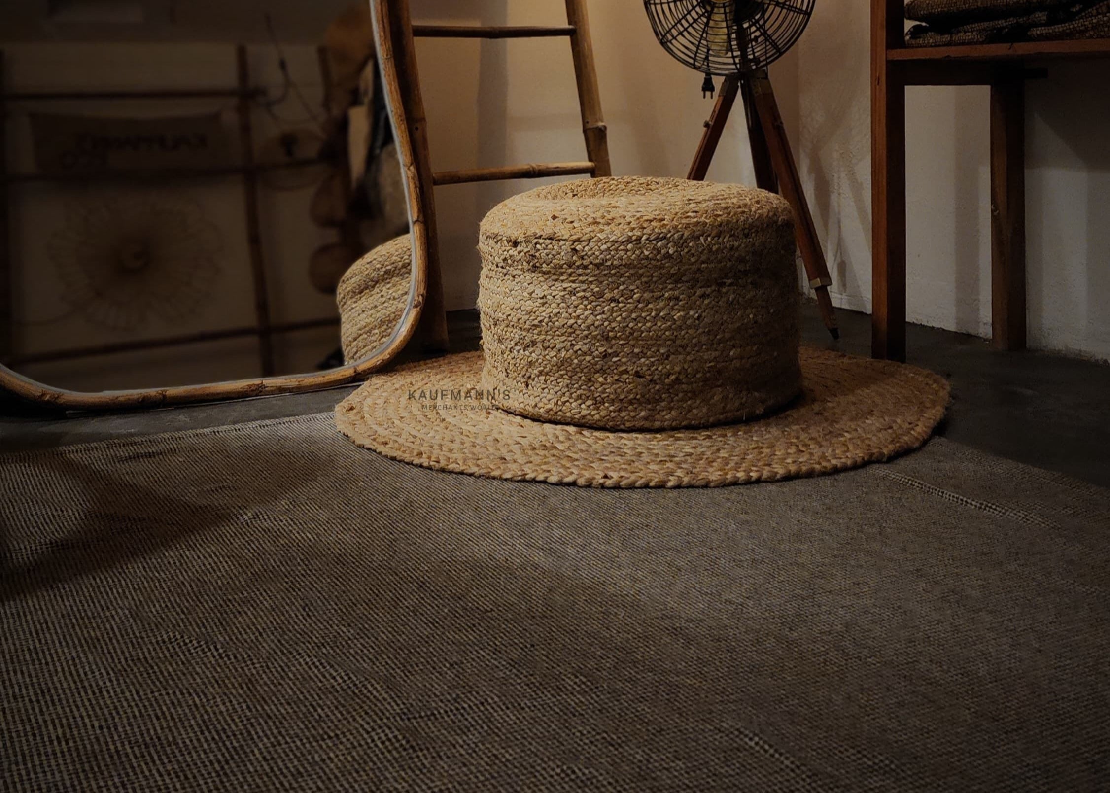 array of organic linen and cotton fabrics, bamboo, cane and jute products,